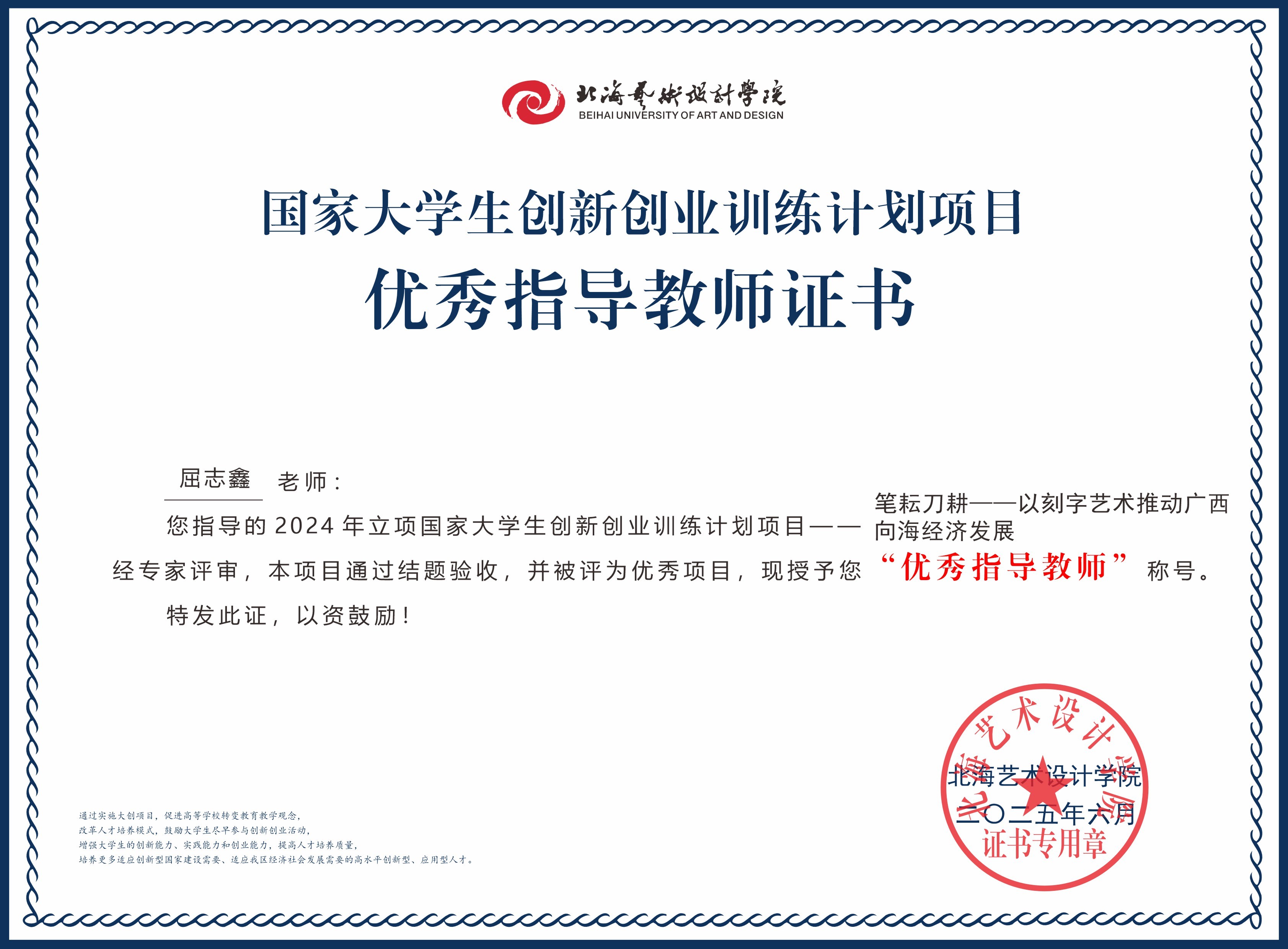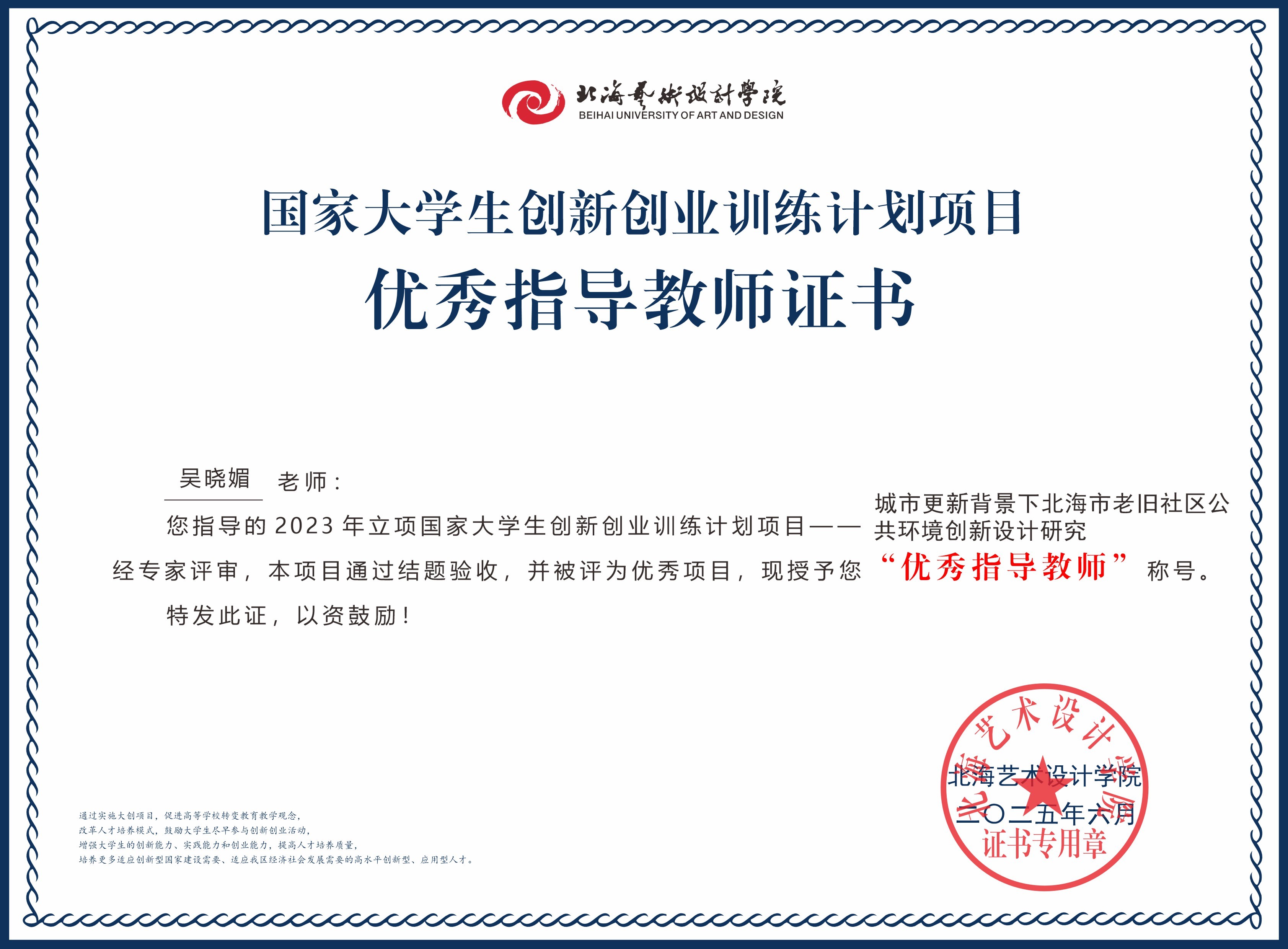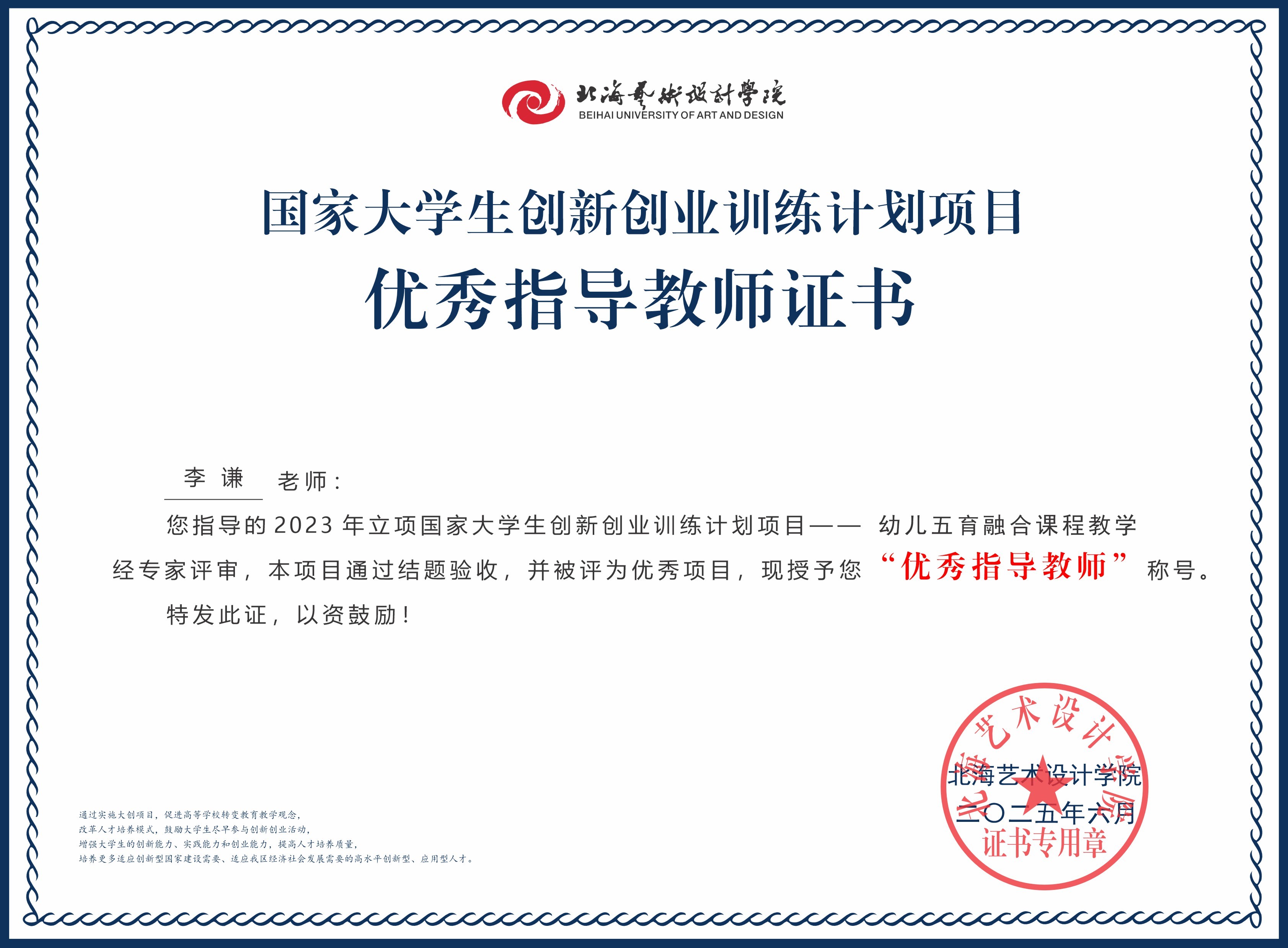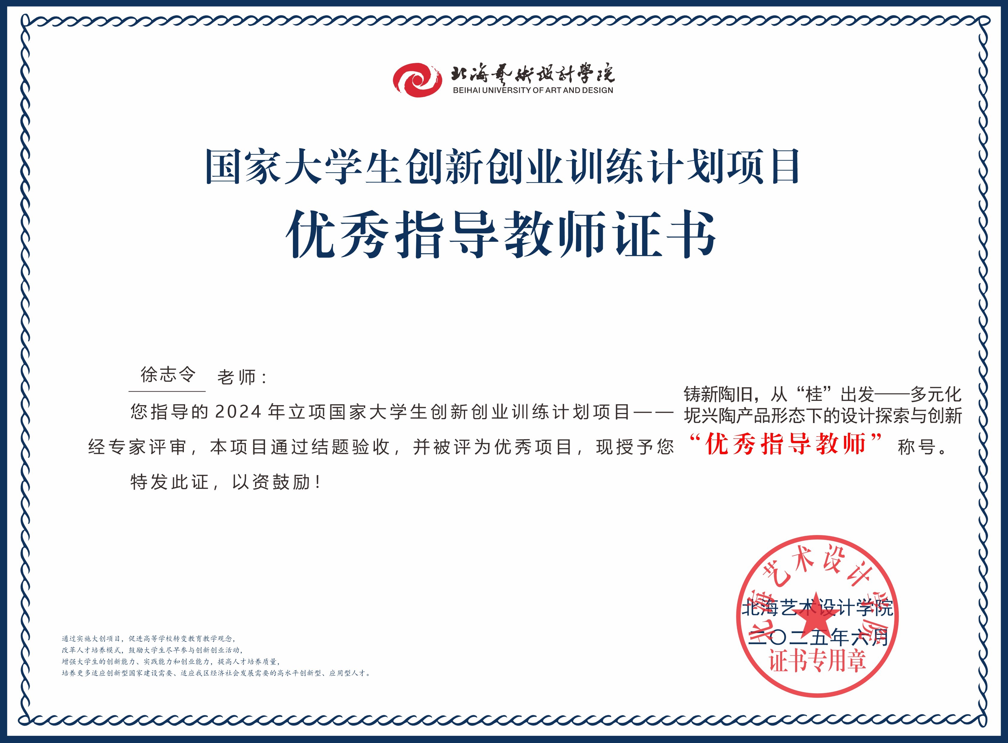 2025年大创项目优秀指导教师