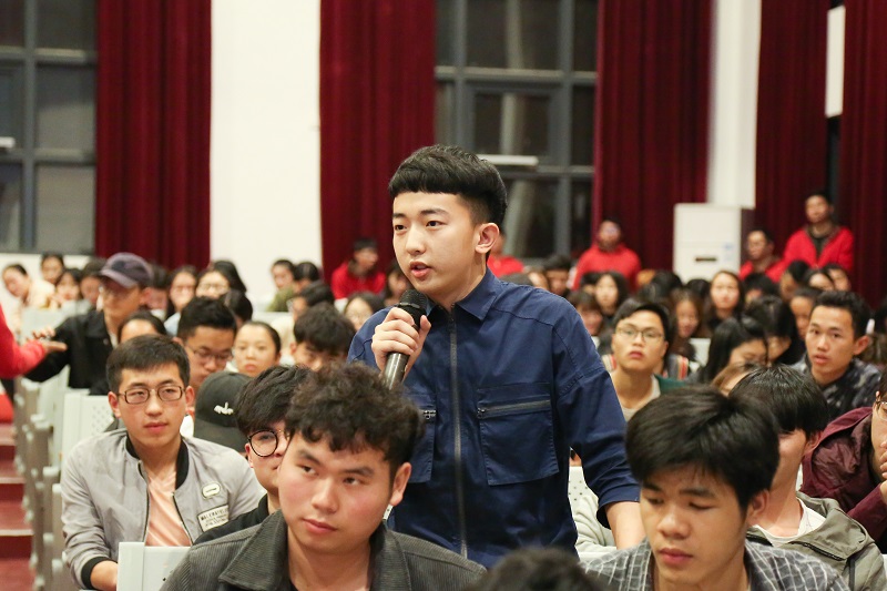 在讲座中,陆雄教授以他幽默朴实的讲解方式与同学们展开互动,并凭借他27年的创业经验与同学们分享了他在创业路上的一些风雨历程。
