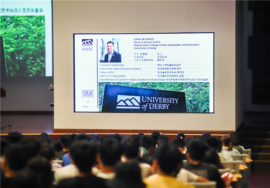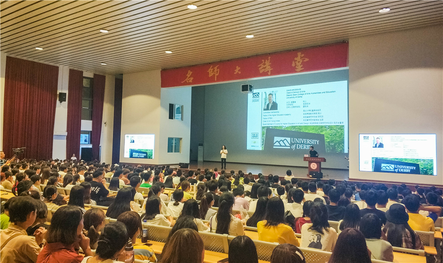 2019年9月16日(星期一)晚上7点30分于我校西校区大礼堂,英国德比大学艺术学院常务院长大卫·麦葛威(DAVID McGRAVIE)受邀到我校作一场题为《在英国艺术设计的画廊中驰骋》的讲座,现场座无虚席。本次讲座由胡胜副校长主持。