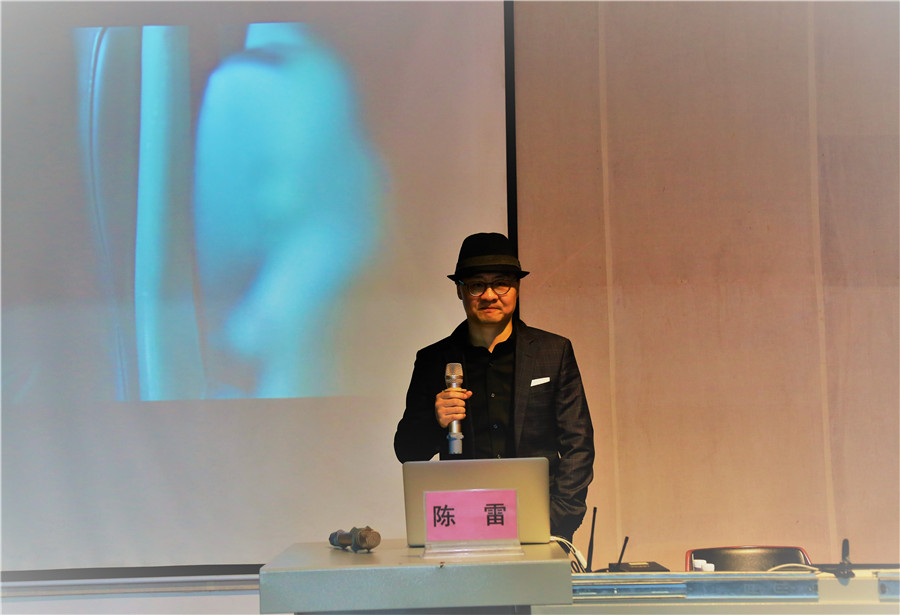 讲座过程中,陈教授还谈到了“非黑色不戏剧”,要注意光线的运用。他展示了拍摄时场景内不同的光线布置所呈现出的不同场景效果。如逆光拍摄起到的是一个轮廓灯的效果。 随后,陈教授为大家详细讲解了布光、机位和拍摄手法等问题,让大家对视频拍摄有了更加深刻的了解。