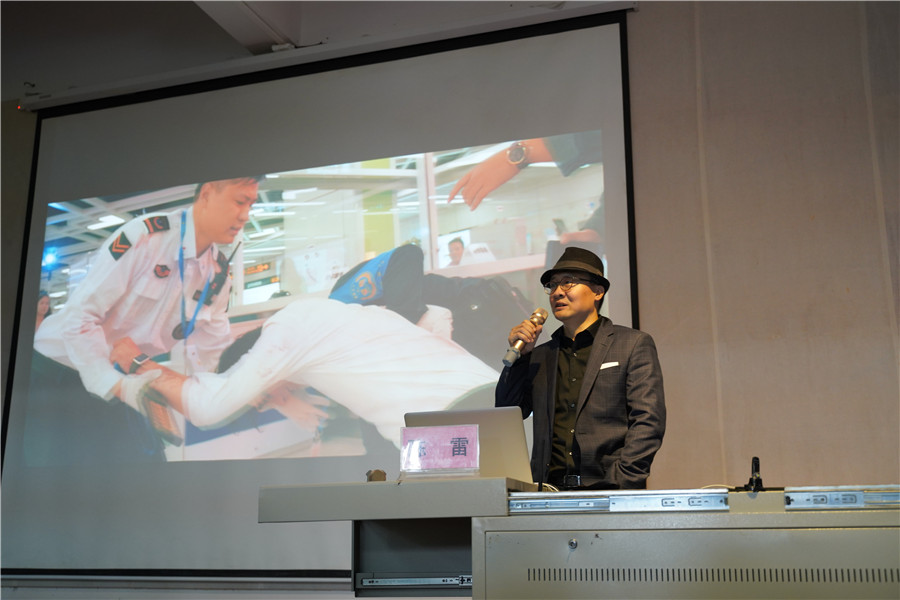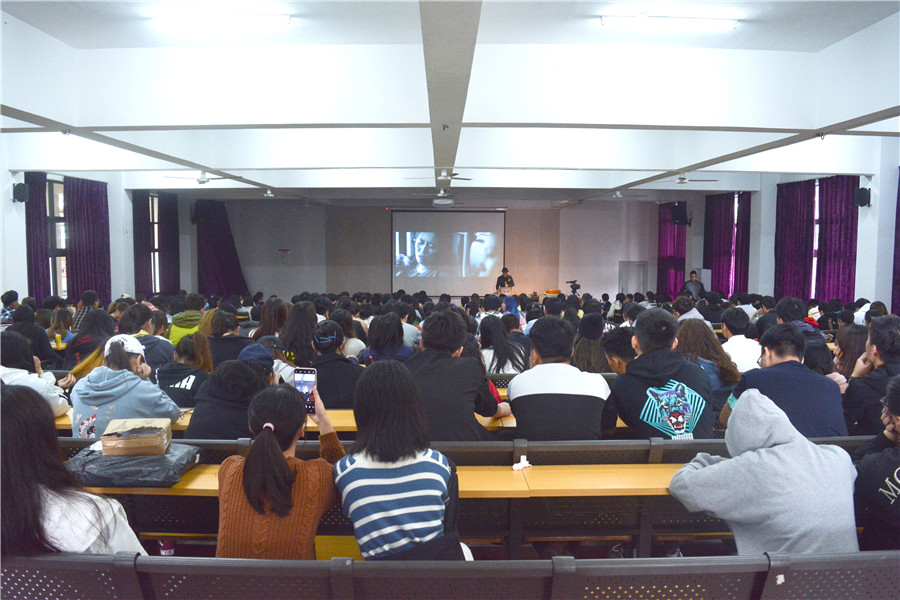 2019年12月23日15:00于我校西校区伦理楼107,广西艺术学院设计学院副院长、动画系主任陈雷教授为我校师生带来了一场题为《主旋律短视频创作经验分享》的精彩讲座,吸引了动画学院广大师生前往聆听,现场座无虚席。本次讲座由动画学院副院长孙永辉主持。
