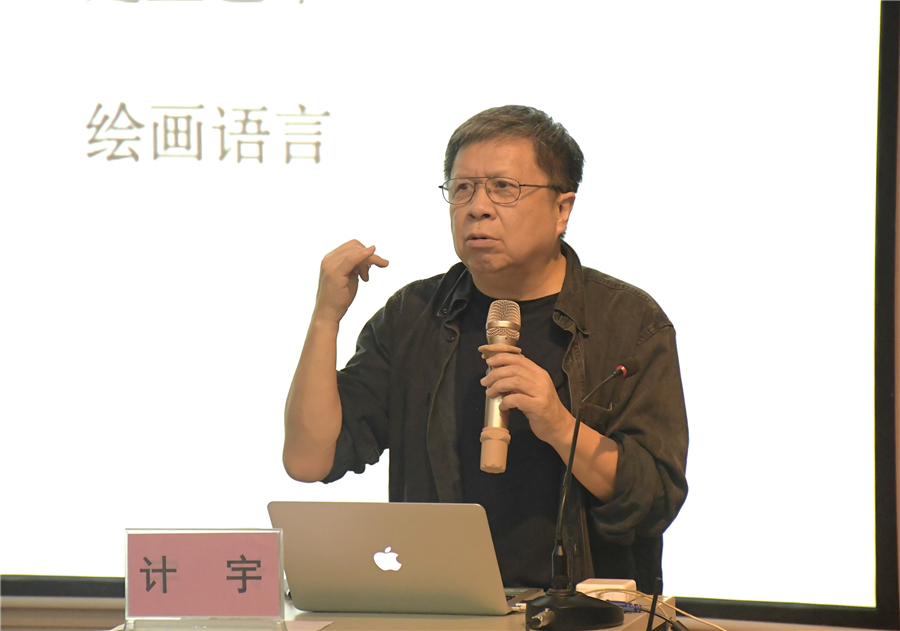 计宇教授以马克思主义哲学观来介绍文艺复兴到当代的西方绘画作品,深入解读西方绘画语言中的构图问题。计教授还与大家还分享了他在美国学习绘画和教学的经历和体会,分享了绘画的学习方法和创意思维。